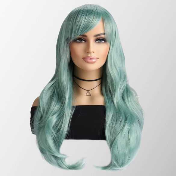 Carnavalspruik mintgroen lang haar in laagjes