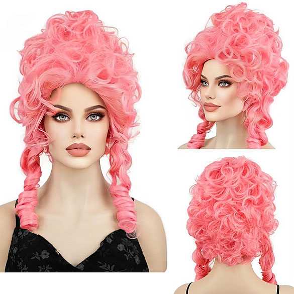 Marie Antoinette pruik zoet roze kort met krullen