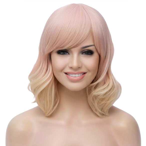 Pruik schouderlang haar met wave krullen. Model zonder pony. Scheiding met stukje huidimitatie.