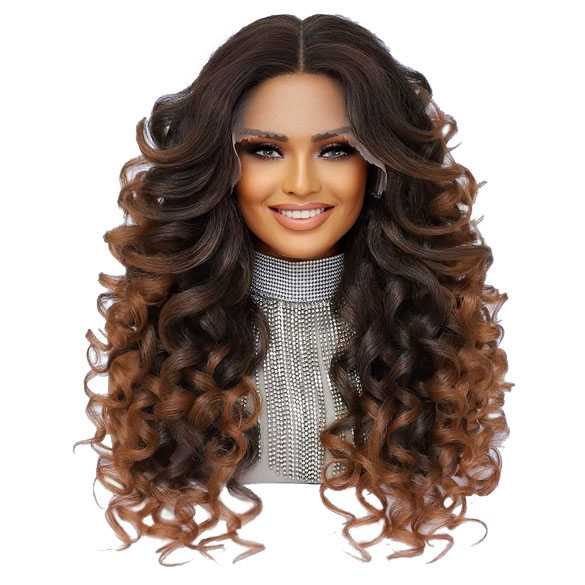 Luxe swiss lace front pruik lang haar met weelderige losse volle krullen. Model zonder pony. Handgeknoopte lace scheiding. Extra kammetjes aan de binnenkant voor betere houvast. Comfortabele stretch cap. Het haar is hittebestendig en kan gestyled worden met een föhn of krultang
