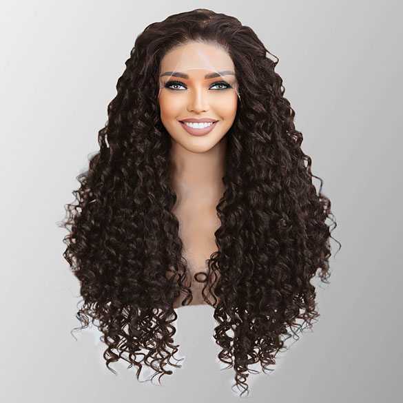 Swiss lace front pruik lang bruin haar met spiraalkrullen Winona