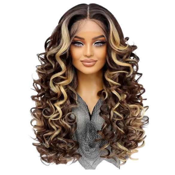 Luxe swiss lace front pruik lang haar met weelderige losse volle krullen. Model zonder pony. Handgeknoopte lace scheiding. Extra kammetjes aan de binnenkant voor betere houvast. Comfortabele stretch cap. Het haar is hittebestendig en kan gestyled worden met een föhn of krultang