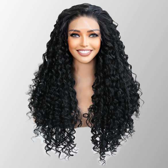 Swiss lace front pruik lang zwart haar met spiraalkrullen Winona