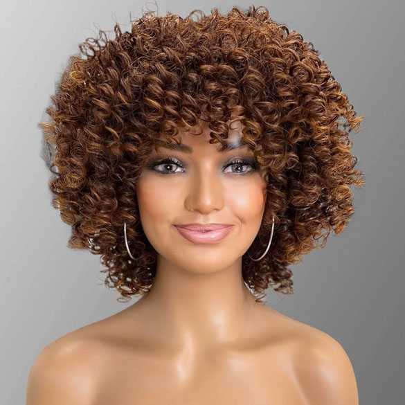 Pruik afro spiraalkrullen vol volume licht kastanjebruin mix