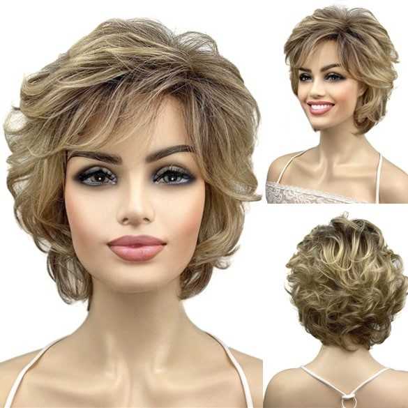€ 37,95Pruik kort haar in laagjes met speelse plukjes. Natuurlijke asblonde ondertoon. Top met permatease steunharen.