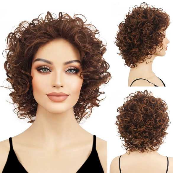Damespruik kort krullend haar in warm roodbruin