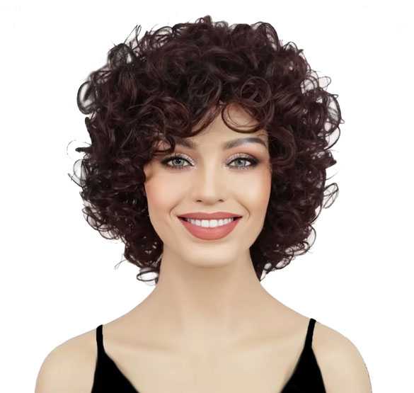 Damespruik kort krullend haar in donker kastanjebruin