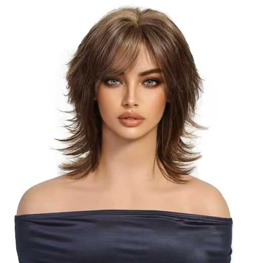 Moderne pruik kort steil haar met plukjes