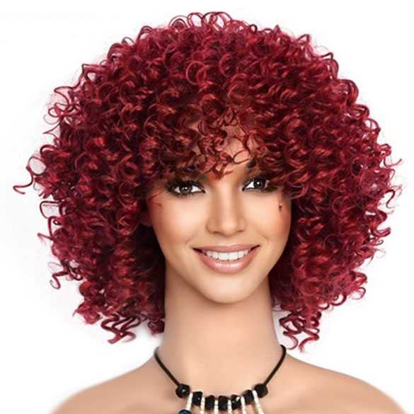 Pruik kort / halflang met afro spiraalkrullen. Binnenkant cap met extra schuifkammen voor betere houvast in het eigen haar.