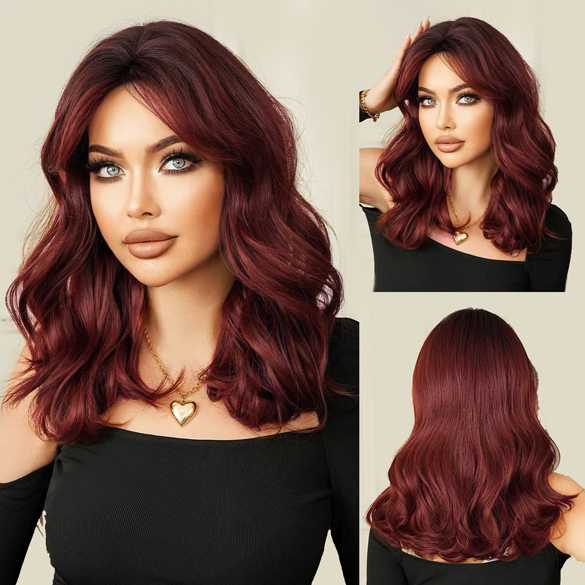 Pruik lang haar met slagen in mahonie rood