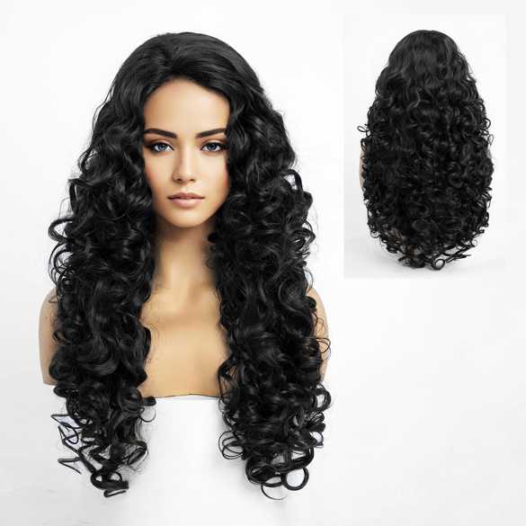 Mooie pruik lang zwart haar veel volume en krullen