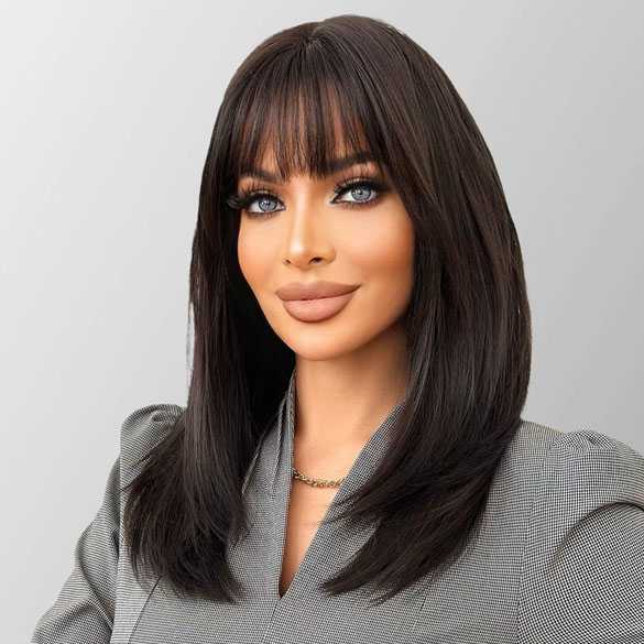 Pruik lang steil donkerbruin haar in laagjes model 420